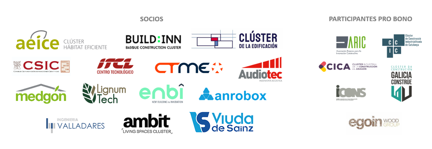 El proyecto CLIC articula una red colaborativa de clústeres, centros tecnológicos y pymes, liderada por el clúster AEICE, y cuenta con la participación de otras Agrupaciones Empresariales Innovadoras como BUILD:INN, Clúster de la Edificación y AMBIT; entidades de investigación como el IETcc Eduardo Torroja (CSIC), CTME e ITCL; y diversas pymes industriales especializadas. ARIC participa en el proyecto junto al resto de integrantes de la Red de Clústeres de la Construcción, aportando su experiencia en innovación, sostenibilidad e industrialización aplicada al contexto regional.